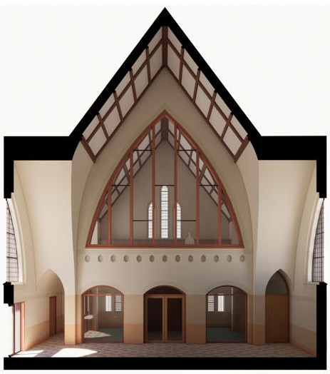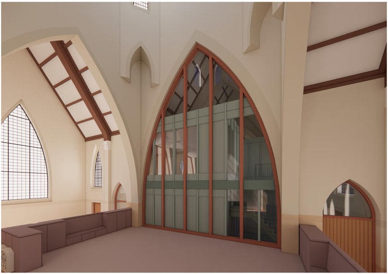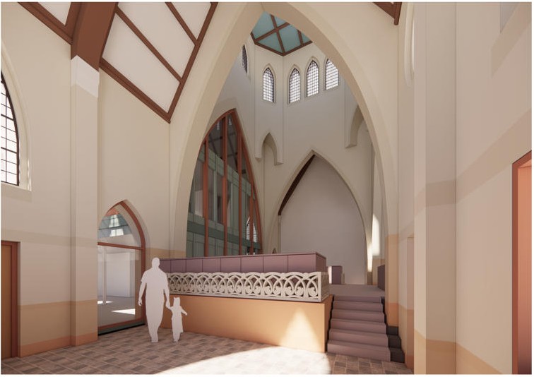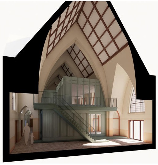 Dit ontwerpt zorgt ervoor dat de oorspronkelijke kapel intact blijft, terwijl de binnenruimte een unieke omgeving biedt voor de opvang van kinderen.